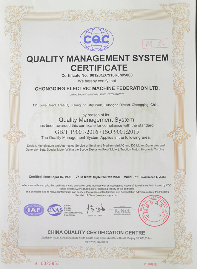 公司傳承了原重慶電機(jī)廠先進(jìn)的電機(jī)制造技術(shù)和管理經(jīng)驗(yàn),建立了按現(xiàn)代企業(yè)制度管理方式的法人治理機(jī)制,是國(guó)家重點(diǎn)企業(yè)及研發(fā)、生產(chǎn)和銷(xiāo)售各型交流異步電動(dòng)機(jī)、交流同步電動(dòng)機(jī)、直流電動(dòng)機(jī)、汽車(chē)電機(jī)、軌道牽引電機(jī)、水輪發(fā)電機(jī)及發(fā)電機(jī)組和其它特殊電機(jī)的專(zhuān)業(yè)制造廠家。